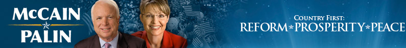 McCain säger ”Country first: Reform, prosperity and peace”.